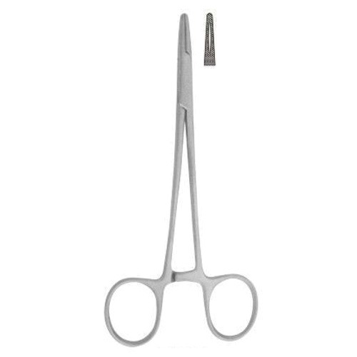 Mayo-Hegar Needle Holder with stainless steel tip is often used in general surgery for clamping onto suture needles of various lengths.